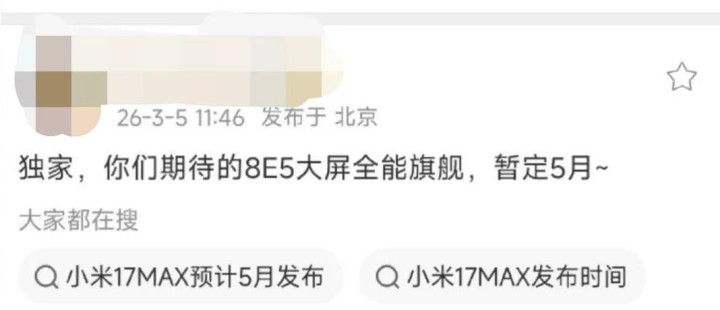 最新爆料说,手机会在26年5月发布。