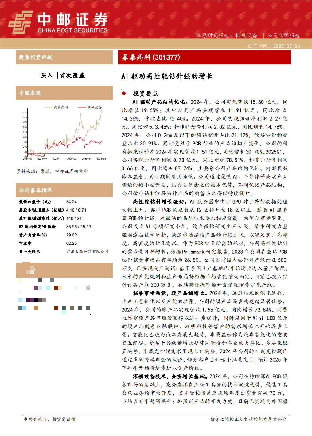 公司近期订单充足,钻针产品交付相对较为紧张,目前主要通过降低备用库存的方式缓解部分交付压力,为应对需求变化,公司计划加快PCB微型钻针募投建设项目的建设进度,有序扩充产能,以满足客户需求。
