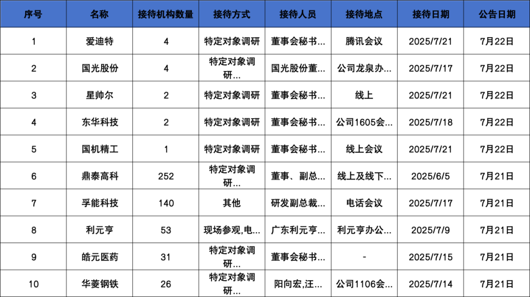 重点机构:华夏基金、嘉实基金、泉果基金、天弘基金、兴全基金、易方达基金、富国基金、泓德基金