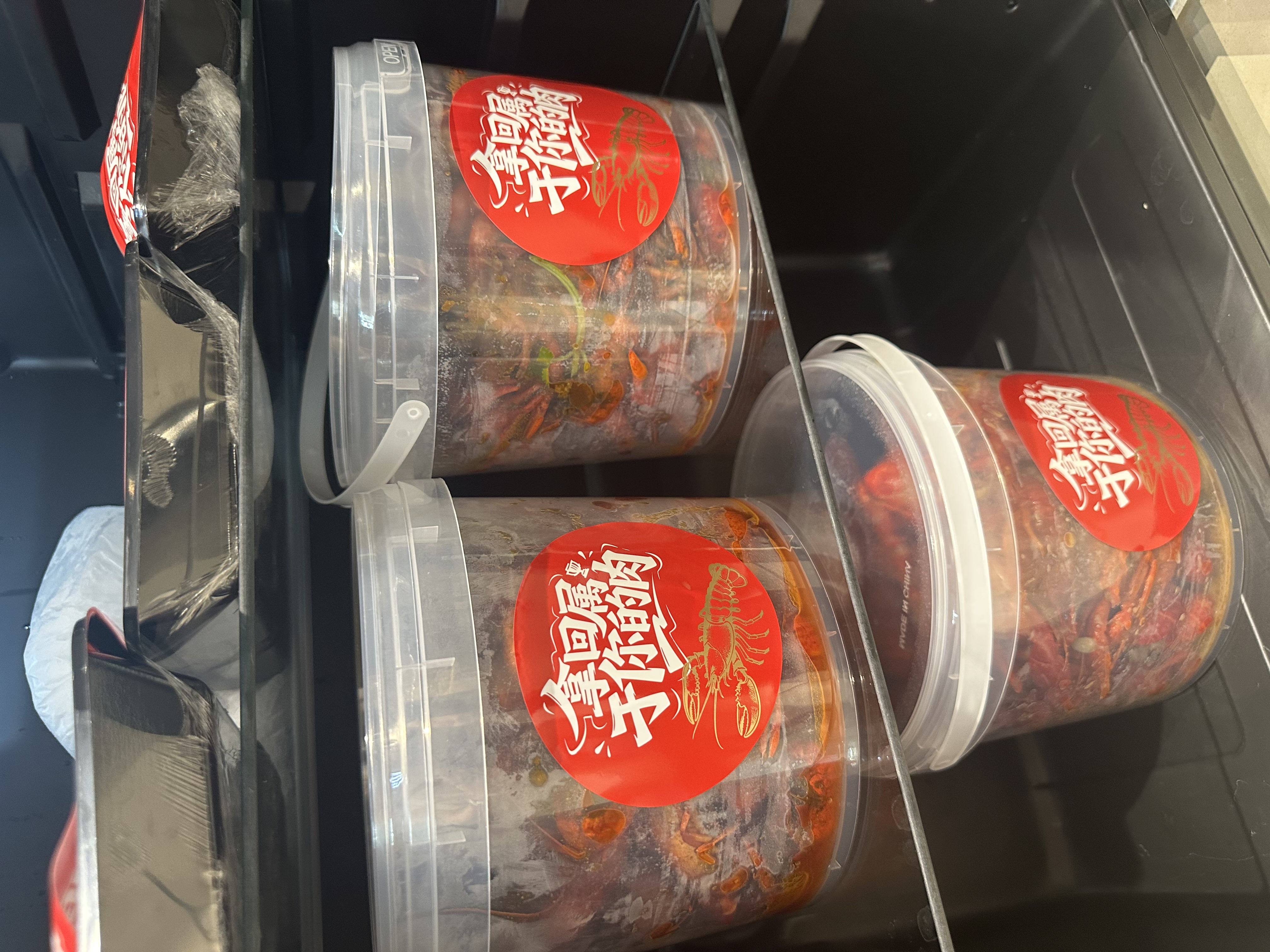 现场的超市工作人员介绍道,每天的兑换时间是上午10:00-12:00,下午4:00-7:00,牛肉是参与活动的市民最喜欢的奖品,“市民可以提前向门店预约领取所需的牛肉,如果没预约,人多的话,来晚了牛肉就没了。”而在这个门店的冷藏柜里,记者发现了三桶香辣味的现制小龙虾,上面贴着“拿回属于你的肉”。