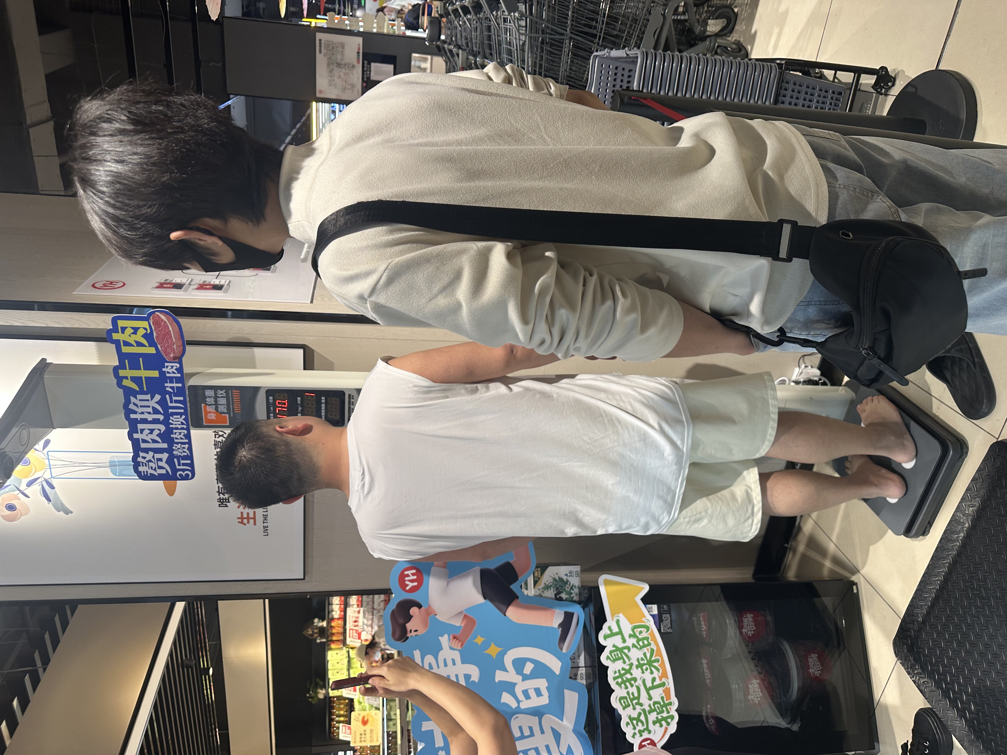 4月14日,封面新闻记者走访这家超市爱琴海购物中心店,了解实际情况。入口处,记者发现一个电子体重称,顶端张贴着“赘肉换牛肉,3斤赘肉换1斤牛肉”标签。一位女性市民正站在体重称前称重,数据显示,她的体重为54.6公斤。她向记者展示了她的活动报名卡,上面写着初次称重时间为4月1日,初次体重为59.5公斤。14天以来,她成功减重4.9公斤。按照规则,她能领取3斤牛肉。
